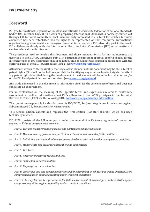 Keywords: ISO 8178-8, engine group determination, exhaust emission measurement, reciprocating internal combustion engines, engine modification, stationary engines, marine engines, emission compliance, parent engine, engine certification, non-road engines.