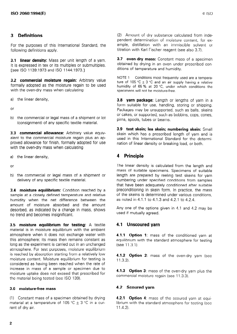 ISO 2060:1994 - Textiles — Yarn from packages — Determination of linear density (mass per unit length) by the skein method Released:11/17/1994