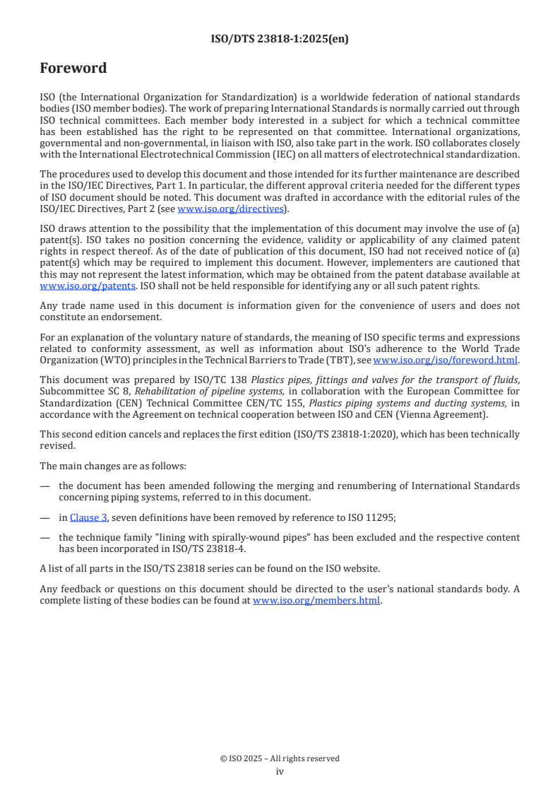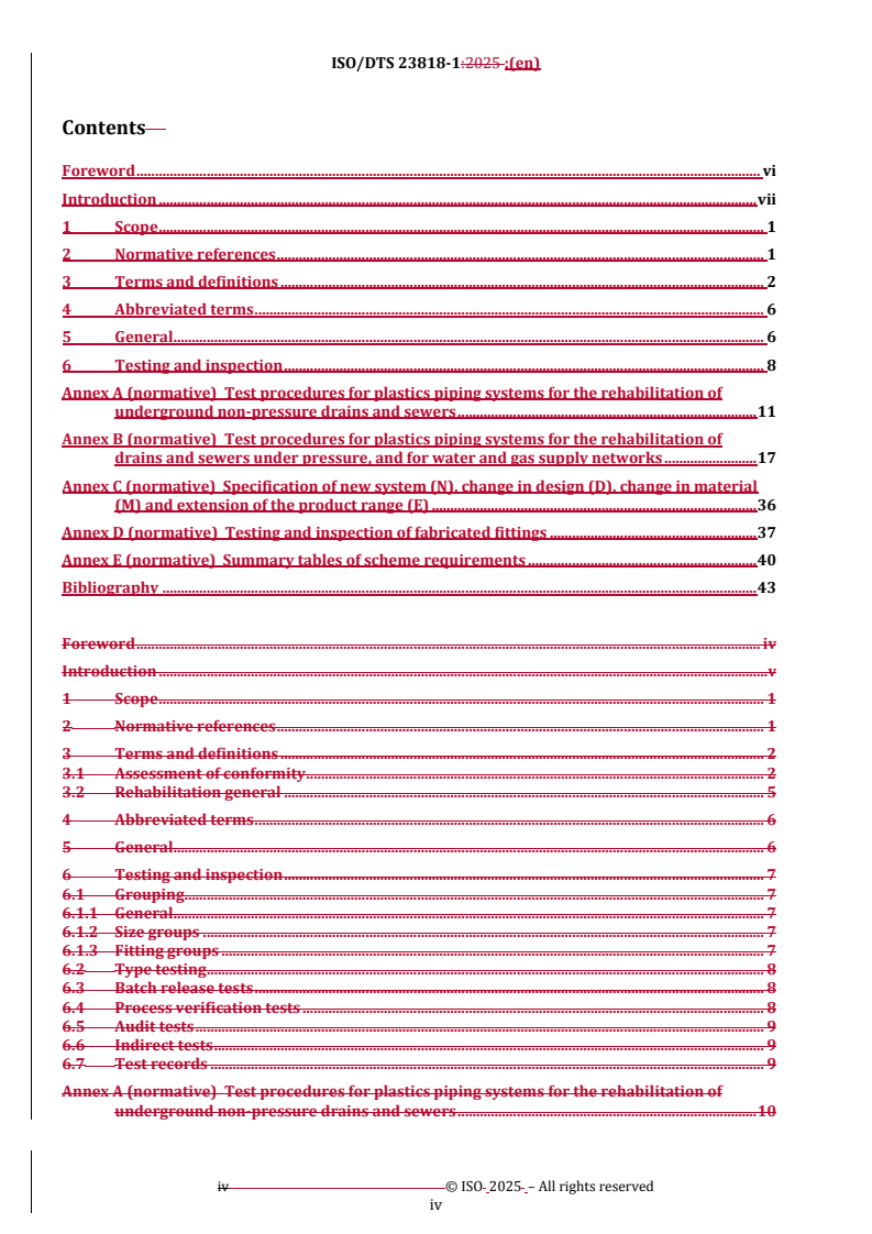 REDLINE ISO/DTS 23818-1 - Assessment of conformity of plastics piping systems for the rehabilitation of existing pipelines — Part 1: Polyethylene (PE) material Released:22. 10. 2025