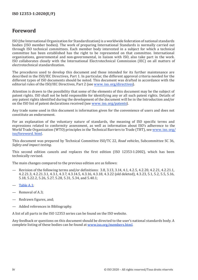 ISO 12353-1:2020 is a standard published by the International Organization for Standardization (ISO). Its full title is "Road vehicles - Traffic accident analysis - Part 1: Vocabulary". This standard covers: This document establishes a vocabulary relating to the investigation and analysis of road traffic accidents and to the application of accident data. It also lists other, commonly used terms in the domain. NOTE Additional terms and definitions, related to configuration aspects of road vehicle collisions, can be found in ISO 6813.