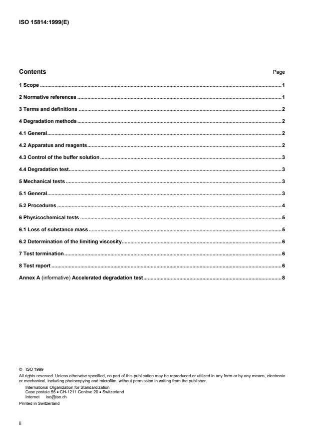 ISO 15814:1999 is a standard published by the International Organization for Standardization (ISO). Its full title is "Implants for surgery - Copolymers and blends based on polylactide - In vitro degradation testing". This standard covers: Implants for surgery - Copolymers and blends based on polylactide - In vitro degradation testing