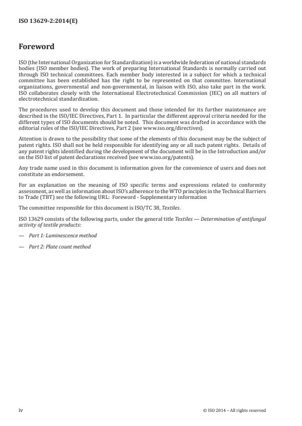 ISO 13629-2:2014 is a standard published by the International Organization for Standardization (ISO). Its full title is "Textiles - Determination of antifungal activity of textile products - Part 2: Plate count method". This standard covers: ISO 13629-2:2014 specifies a test method for quantitative determination of antifungal activity by plate count method. ISO 13629-2:2014 is applicable to various kinds of textile products such as fibres, yarns, fabrics, clothing, bedclothes, home furnishings, and other miscellaneous goods.