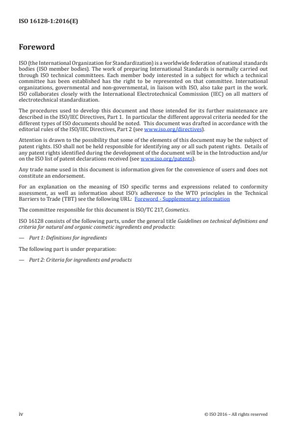 Ta del standarda ISO 16128 podaja smernice za definicije za naravne in organske kozmetične sestavine. Poleg naravnih in organskih sestavin so opredeljene tudi druge kategorije sestavin, ki so morda potrebne za razvoj naravnih in organskih izdelkov, s povezanimi omejitvami.