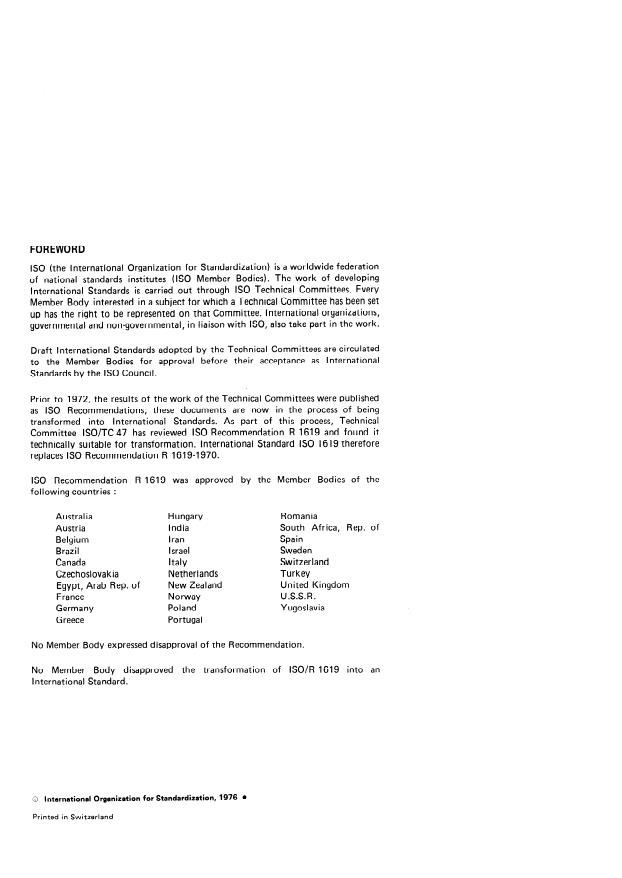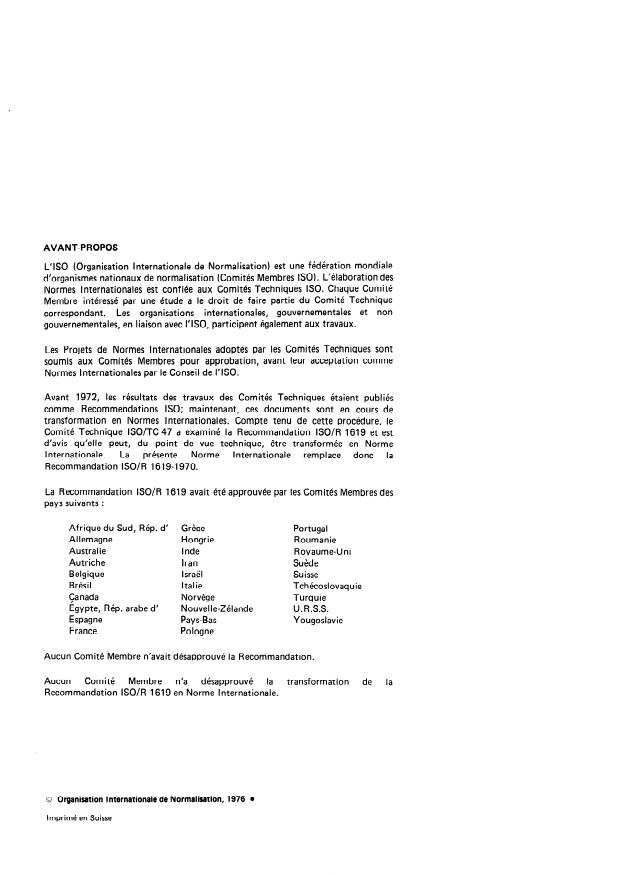 ISO Recommendation R 1619 was approved by the Member Bodies of the