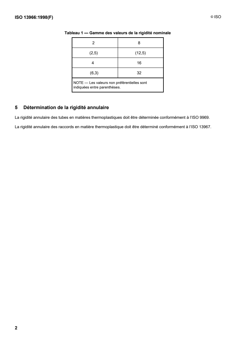 ISO 13966:1998 - Tubes et raccords en matières thermoplastiques — Rigidité annulaire nominale Released:7/9/1998