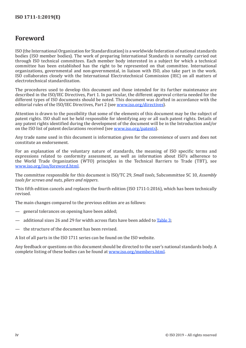 ISO 1711-1:2019 - Outils de manoeuvre pour vis et écrous — Spécifications techniques — Partie 1: Clés de serrage et douilles à main Released:10/11/2019