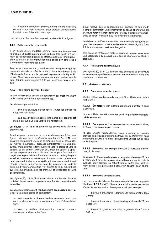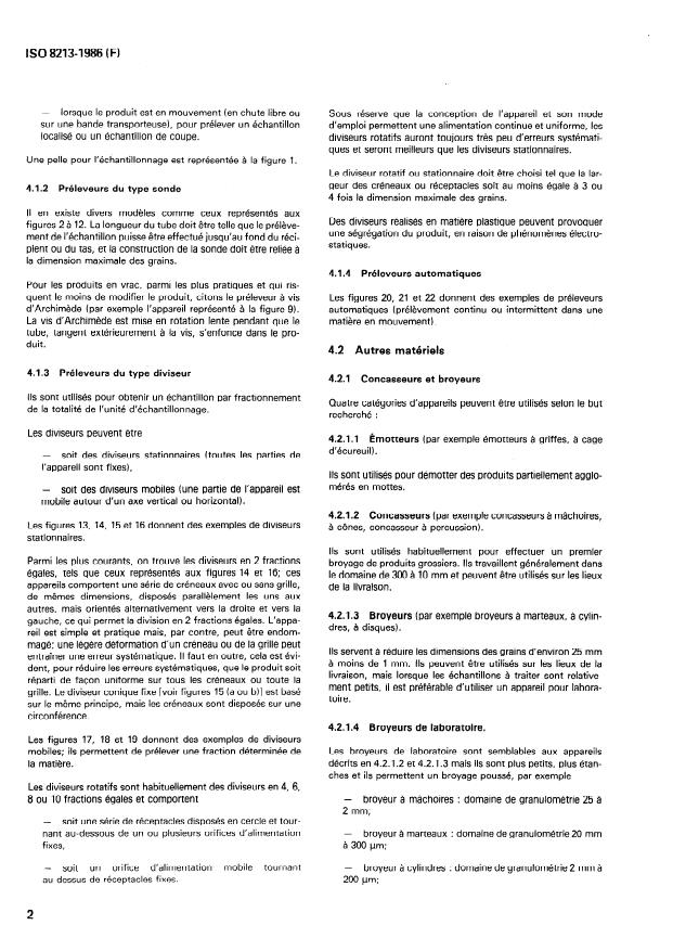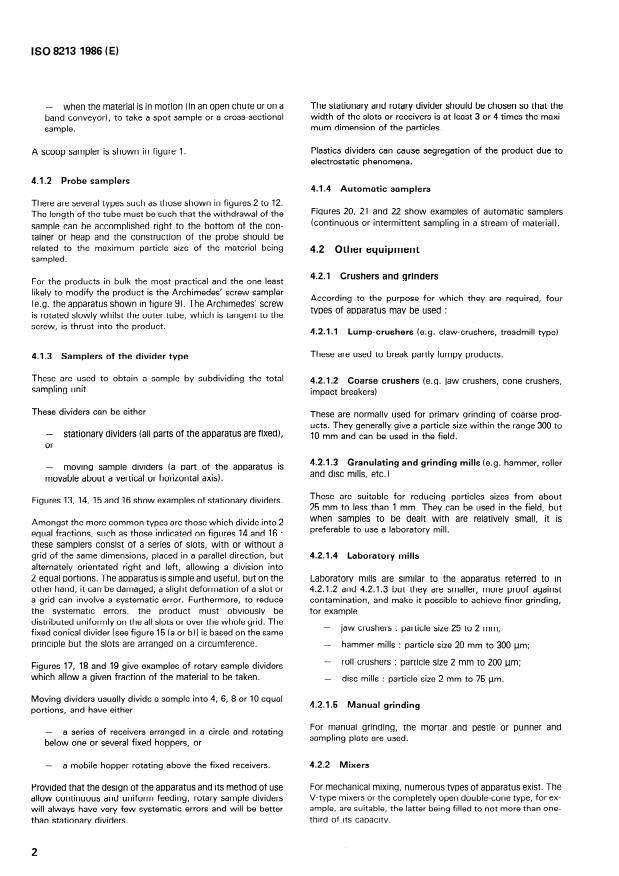 ISO 8213:1986 is a standard published by the International Organization for Standardization (ISO). Its full title is "Chemical products for industrial use - Sampling techniques - Solid chemical products in the form of particles varying from powders to coarse lumps". This standard covers: From the lot to be sampled a certain number of increments is taken. The increments are mixed to form either a bulk sample or several primary samples, depending on the purposes of the sampling. By means of replicate reductions a reduced sample is prepared from the bulk sample or from each primary sample, then several laboratory samples, each stage of the division being preceded in each case by blending and, if necessary, by grinding and sieving the product. This International Standard is applicable to products with a maximum particle size of 100 mm.