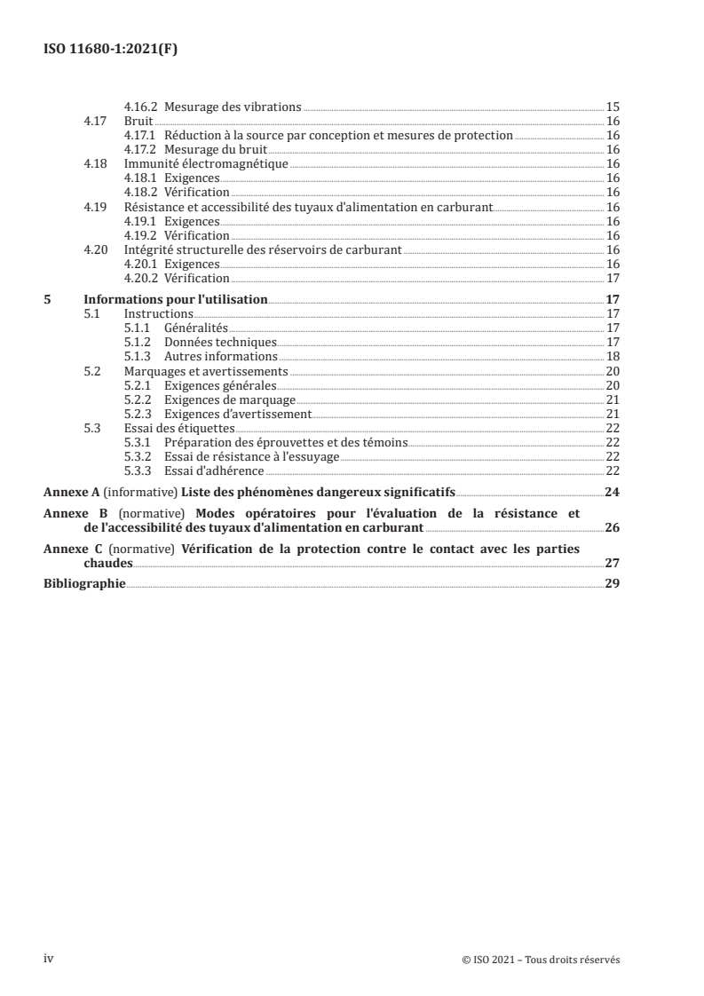 ISO 11680-1:2021 is a standard published by the International Organization for Standardization (ISO). Its full title is "Machinery for forestry - Safety requirements and testing for pole-mounted powered pruners - Part 1: Machines fitted with an integral combustion engine". This standard covers: This document specifies safety requirements and measures for their verification for the design and construction of portable, hand-held, pole-mounted powered pruners (hereafter named “machine”), including extendable and telescopic machines, having an integral combustion engine as their power source. These machines use a power transmission shaft to transmit power to a cutting attachment consisting of a saw-chain and guide bar, a reciprocating saw blade or a single-piece circular saw blade with a 205 mm maximum outside diameter. Methods for the elimination or reduction of hazards arising from the use of these machines and the type of information on safe working practices to be provided by the manufacturer are specified. This document deals with all significant hazards, hazardous situations or hazardous events with the exception of electric shock from contact with overhead electric lines (apart from warnings and advice for inclusion in the instructions), relevant to these machines when they are used as intended and under conditions of misuse which are reasonably foreseeable by the manufacturer (see Annex A). This document is applicable to portable, hand-held, pole-mounted powered pruners manufactured after its date of publication. Brush cutters with a circular saw blade are not included in the scope of this document. NOTE Brush cutter requirements are outlined in ISO 11806-1:2021.