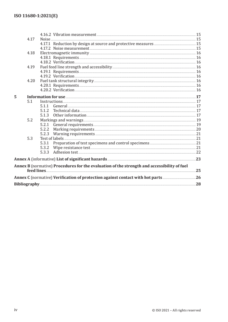 Important normative content is supported by informative and normative annexes: Annex A lists significant hazards; Annex B and C provide verification procedures.