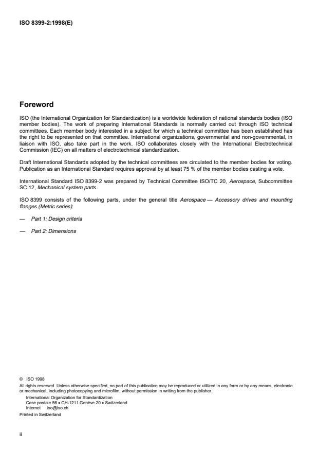 ISO 8399 consists of the following parts, under the general title Aerospace — Accessory drives and mounting