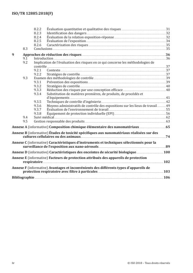 Le présent document décrit des pratiques en matière de santé et de sécurité sur les lieux de travail applicables aux nanotechnologies. Le présent document se concentre sur la fabrication et l'utilisation professionnelles de nano-objets manufacturés et leurs agrégats et agglomérats (NOAA) supérieurs à 100 nm. Il n'aborde pas les questions ou pratiques de santé et de sécurité associées à des NOAA générés par des procédés naturels, des procédés à chaud et d'autres opérations ordinaires qui émettent involontairement des NOAA, ni les expositions ou utilisations potentielles du consommateur, même si certaines des informations contenues dans le présent document peuvent être pertinentes dans ces domaines.
