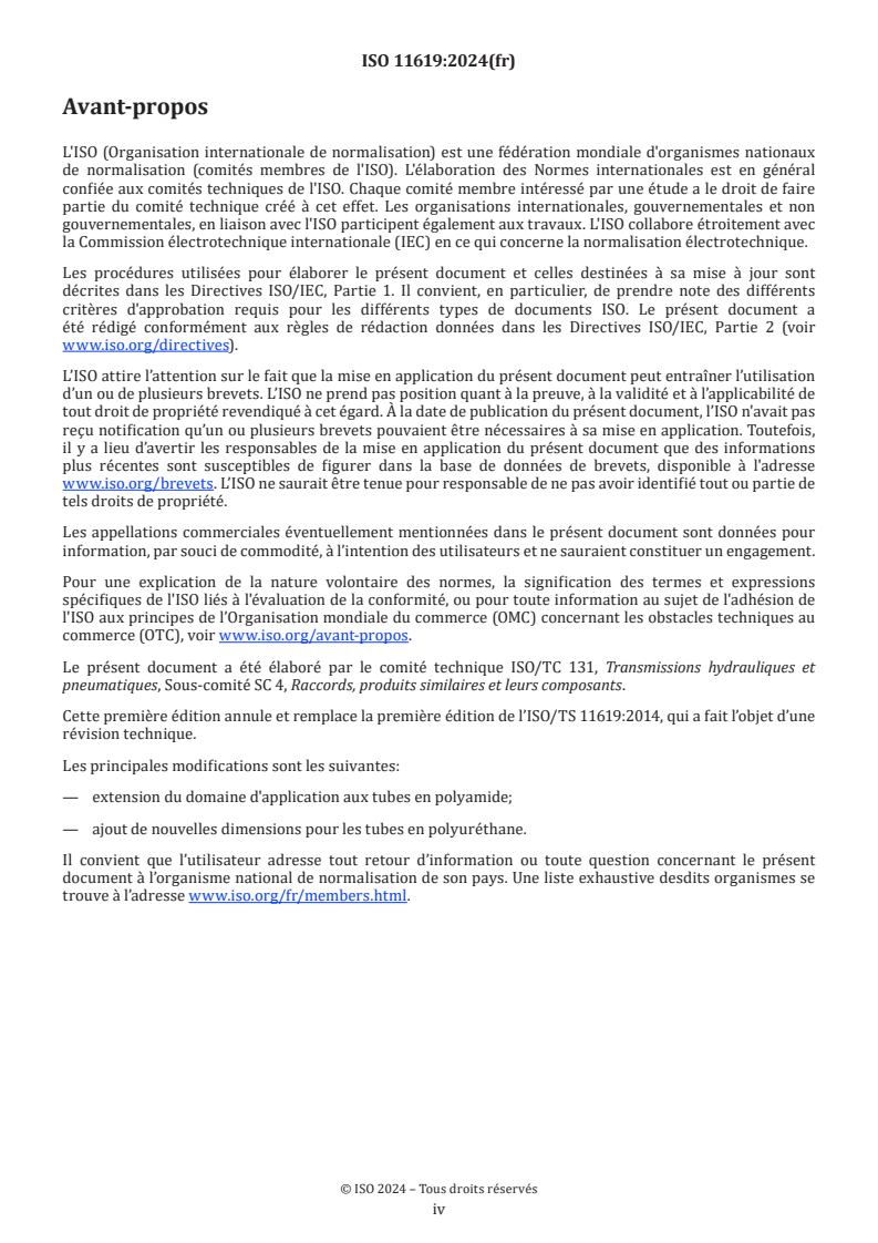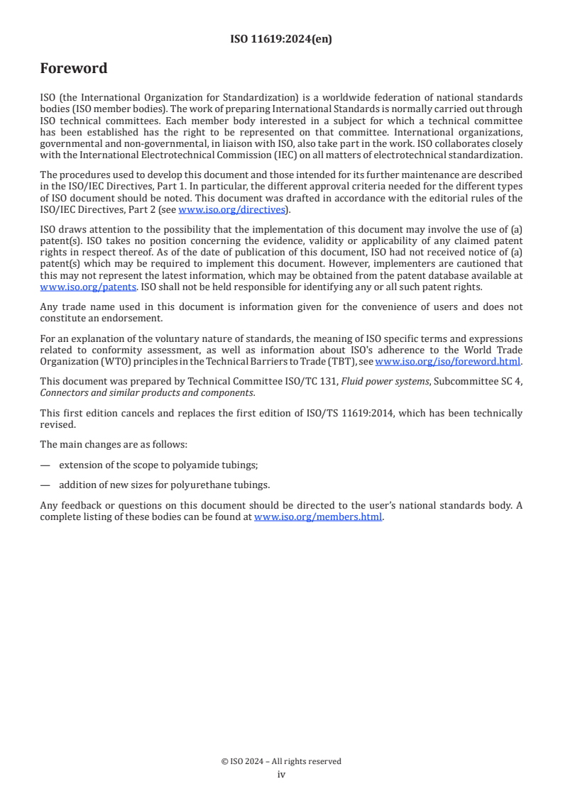 Keywords: ISO 11619:2024, polyurethane tubing, polyamide tubing, pneumatic installations, dimensions and specification, hydrostatic testing, burst pressure, working pressure, tube tolerances.