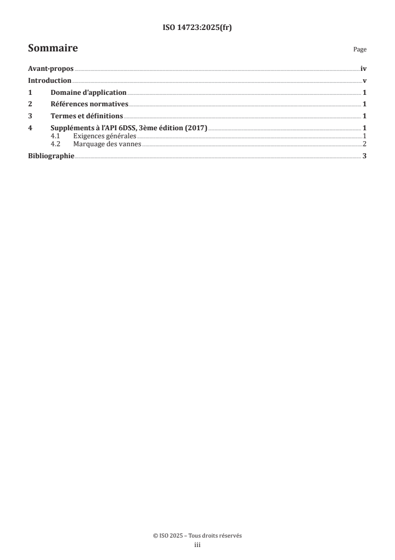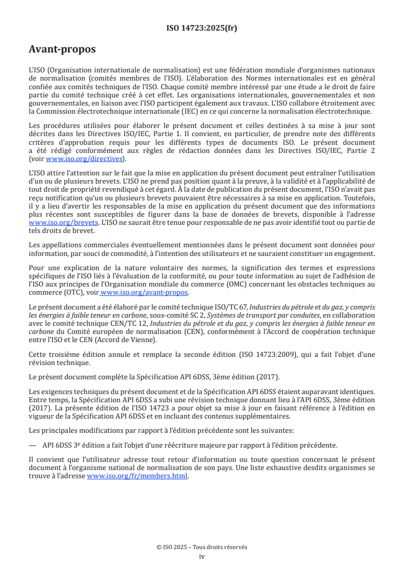 ISO 14723:2025 is a standard published by the International Organization for Standardization (ISO). Its full title is "Oil and gas industries including lower carbon energy - Pipeline transportation systems - Subsea pipeline valves". This standard covers: This document defines the requirements for the design, manufacturing, quality control, assembly, testing, and documentation of ball, check, gate, plug, and axial on–off valves for application in subsea pipeline systems for the petroleum and natural gas industries. This document applies to ASME Class 150, 300, 600, 900, 1500, and 2500 valves intended for use in subsea pipelines. Use of these valves for any other purpose is outside the scope of this document. This document is a supplement to API 6DSS, 3rd edition (2017), with Addendum 1 (2019) and Addendum 2 (2022), including Errata 1-3, the requirements of which are applicable with the additions specified in this document.