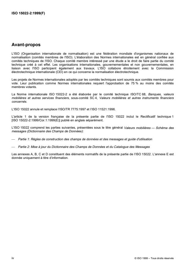 ISO 15022-2:1999 - Valeurs mobilieres -- Schéma des messages (Dictionnaire des Champs de Données)