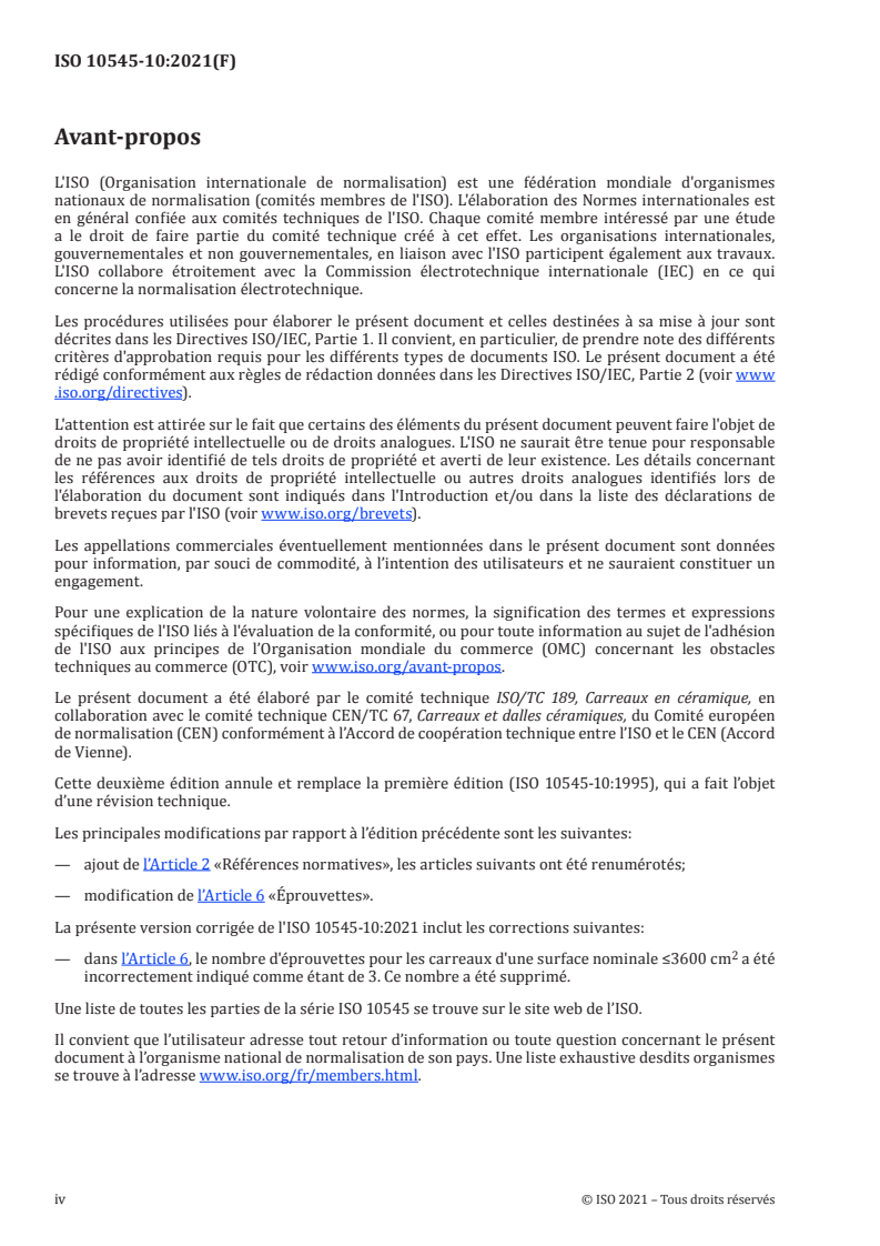 Cette deuxième édition annule et remplace la première édition (ISO 10545-10:1995), qui a fait l’objet