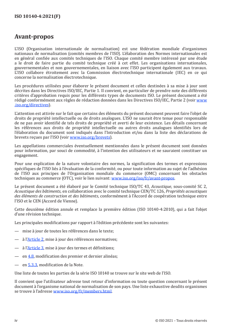 ISO 10140-4:2021 - Acoustique — Mesurage en laboratoire de l'isolation acoustique des éléments de construction — Partie 4: Exigences et modes opératoires de mesurage Released:4/16/2021