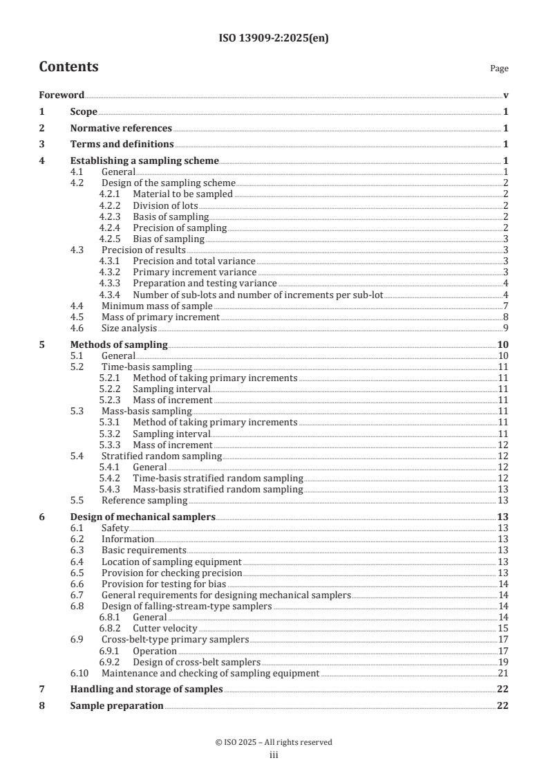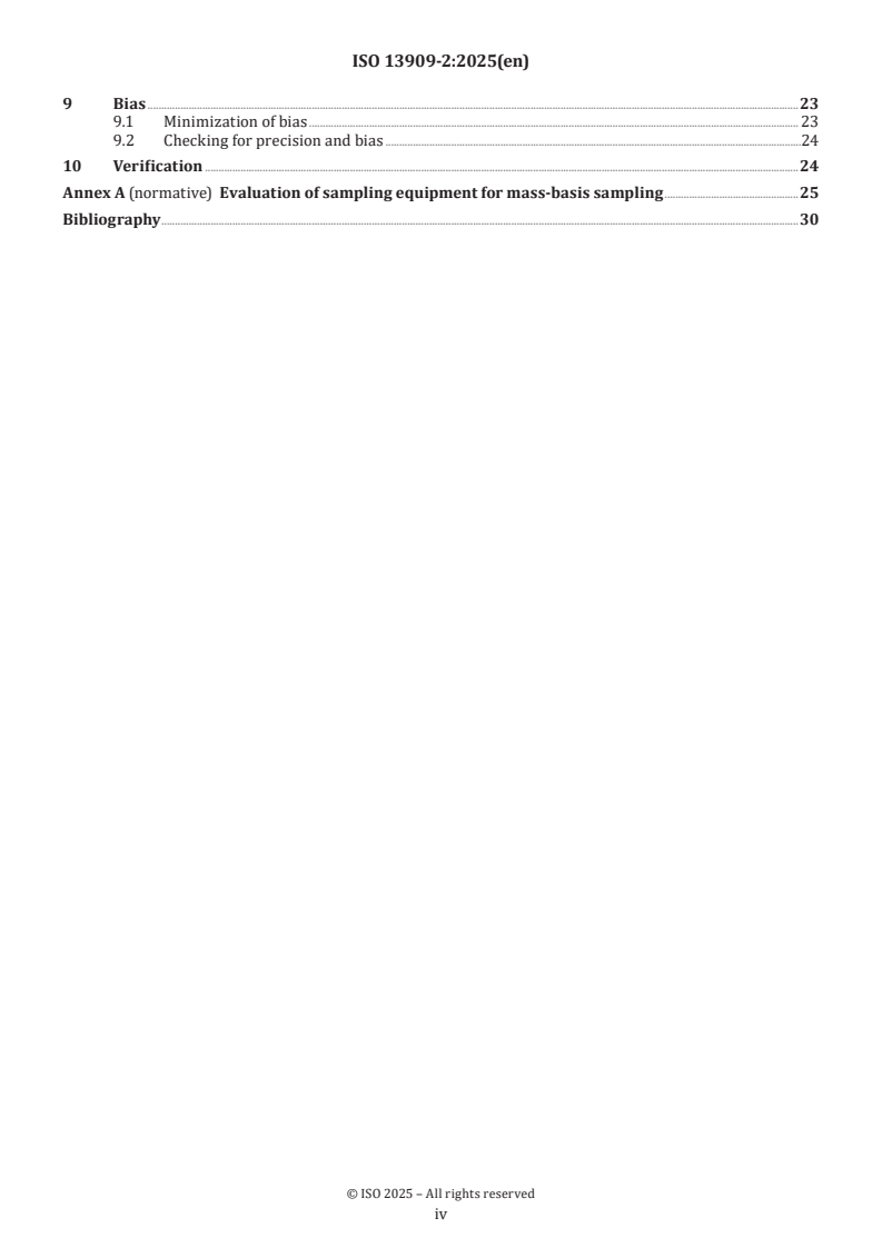 - Requirements for sample storage, preparation of test samples (see ISO 13909-4), and minimizing bias