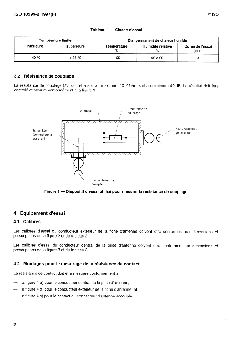 Les connecteurs coaxiaux d’antenne conformes à I’ISO 10599-I doivent appartenir à la classe d’essai 40/085/04,