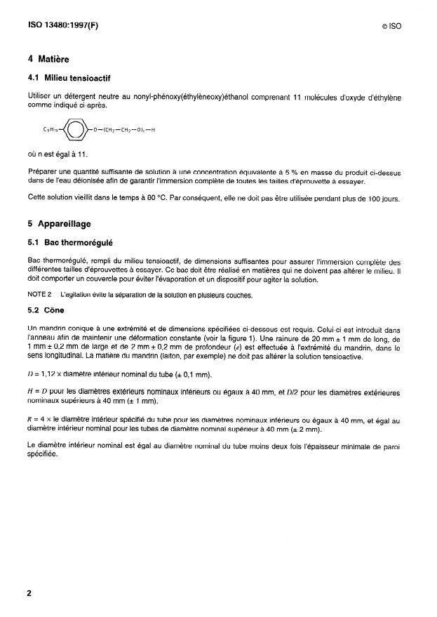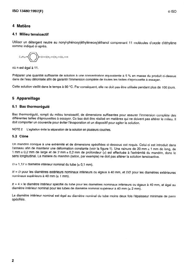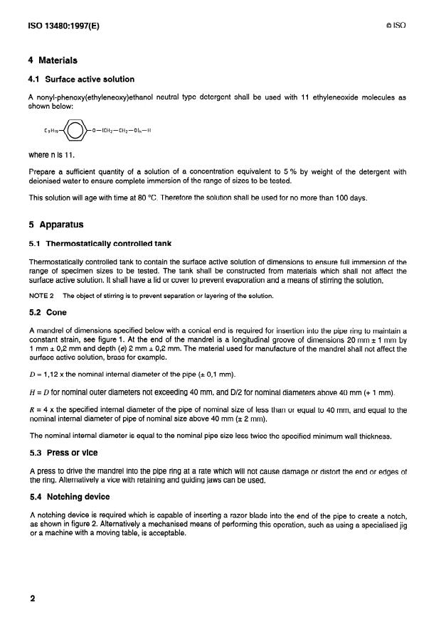 Keywords: ISO 13480:1997, polyethylene pipes, slow crack growth, cone test method, crack propagation, surface-active solution, nonylphenol ethoxylate, notched pipe ring, hoop strain.
