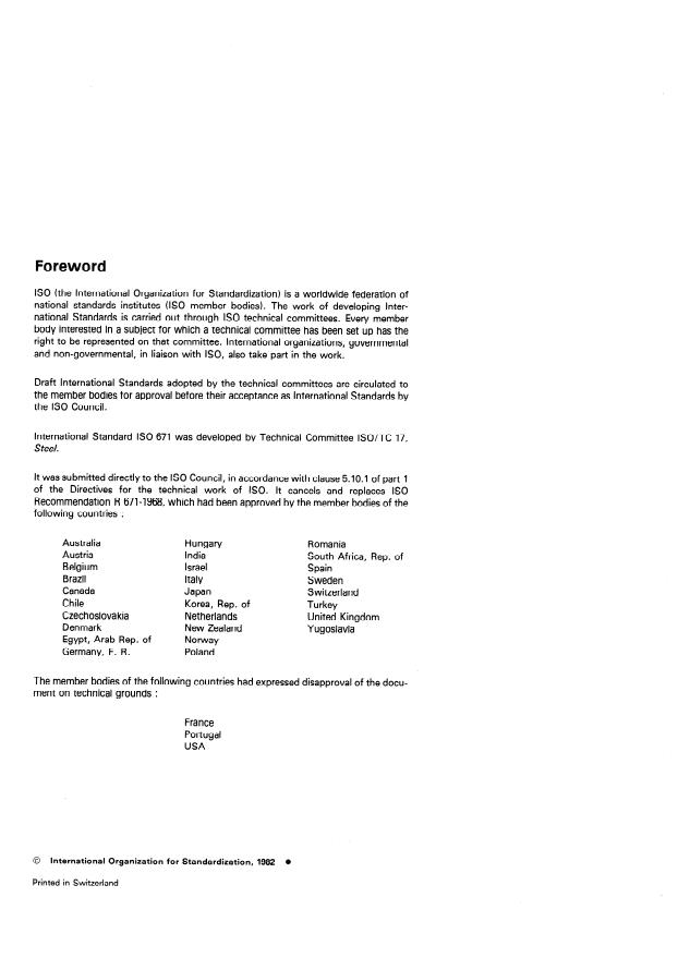 International Standard IS0 671 was developed by Technical Committee ISO/TC 17,