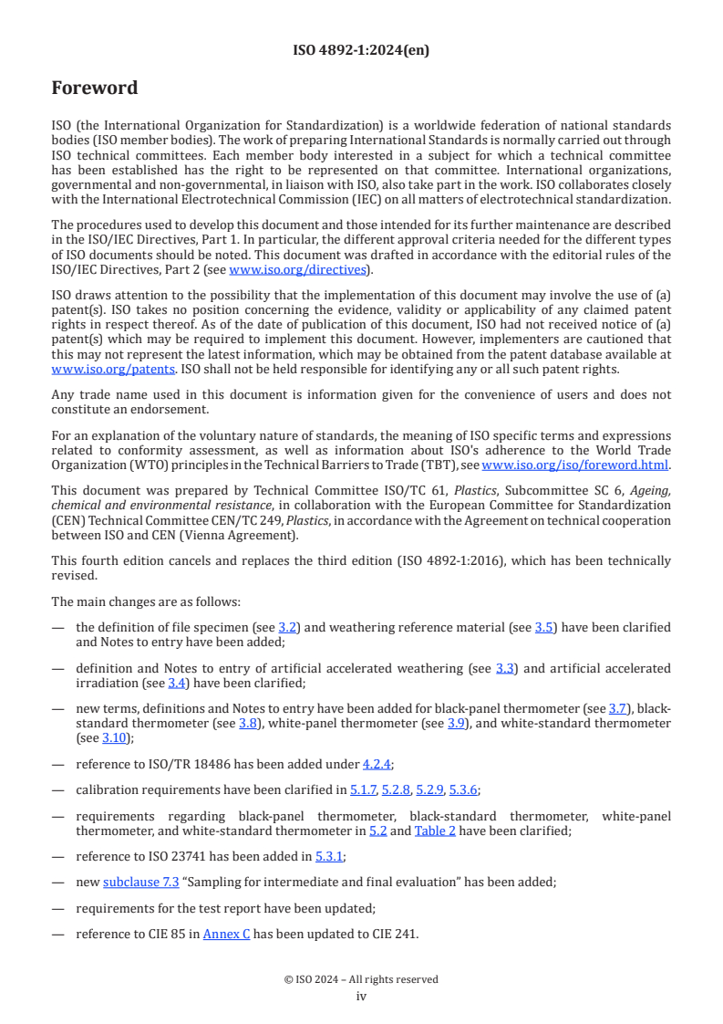Keywords: ISO 4892-1:2024, plastics, accelerated weathering, laboratory light sources, irradiance, black-panel thermometer, test specimens, artificial accelerated irradiation.