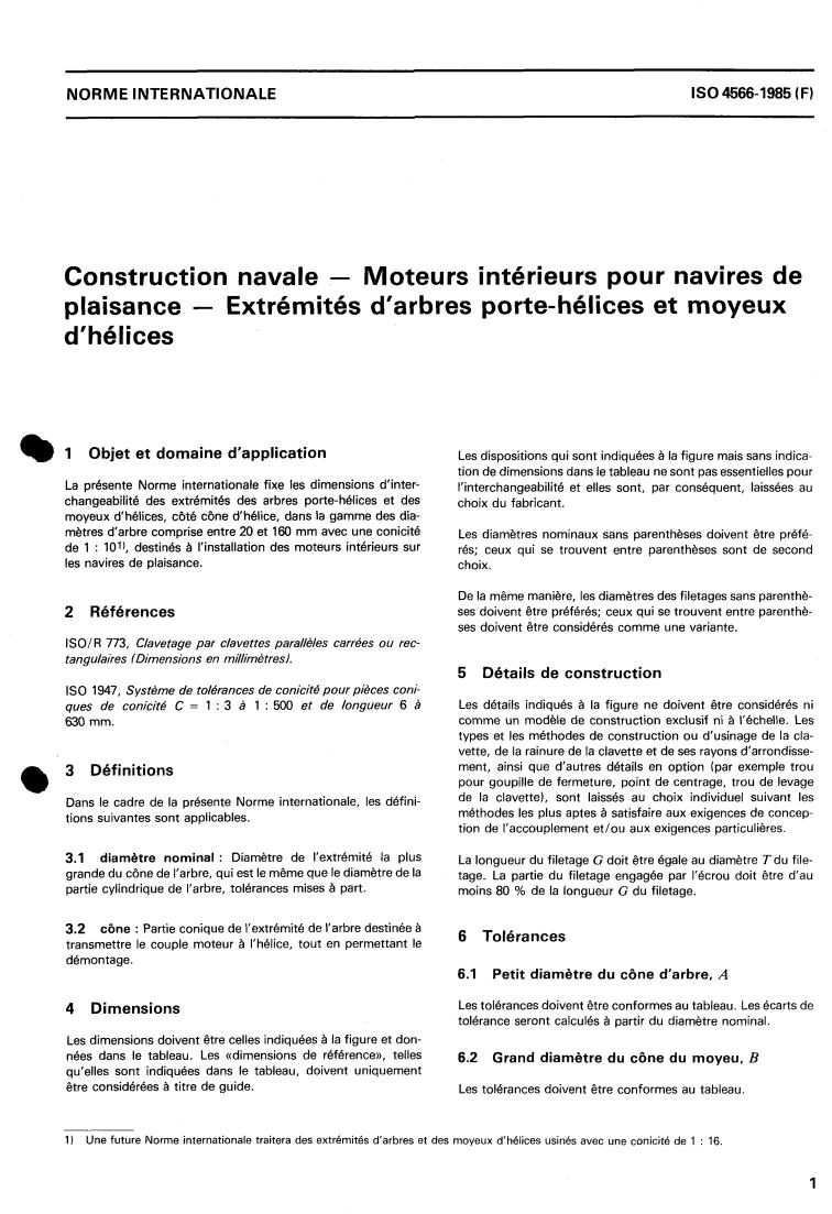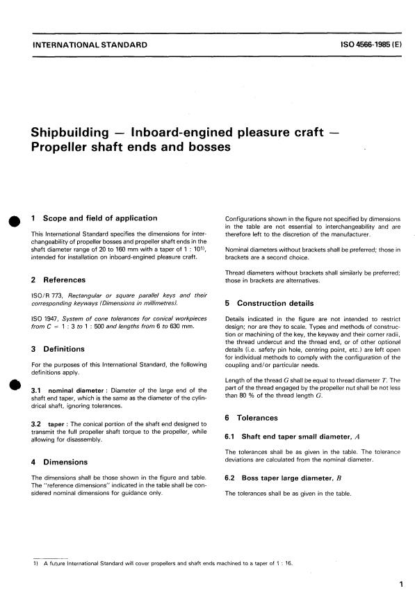 ISO 4566:1985 - Shipbuilding — Inboard-engined pleasure craft — Propeller shaft ends and bosses Released:3/14/1985