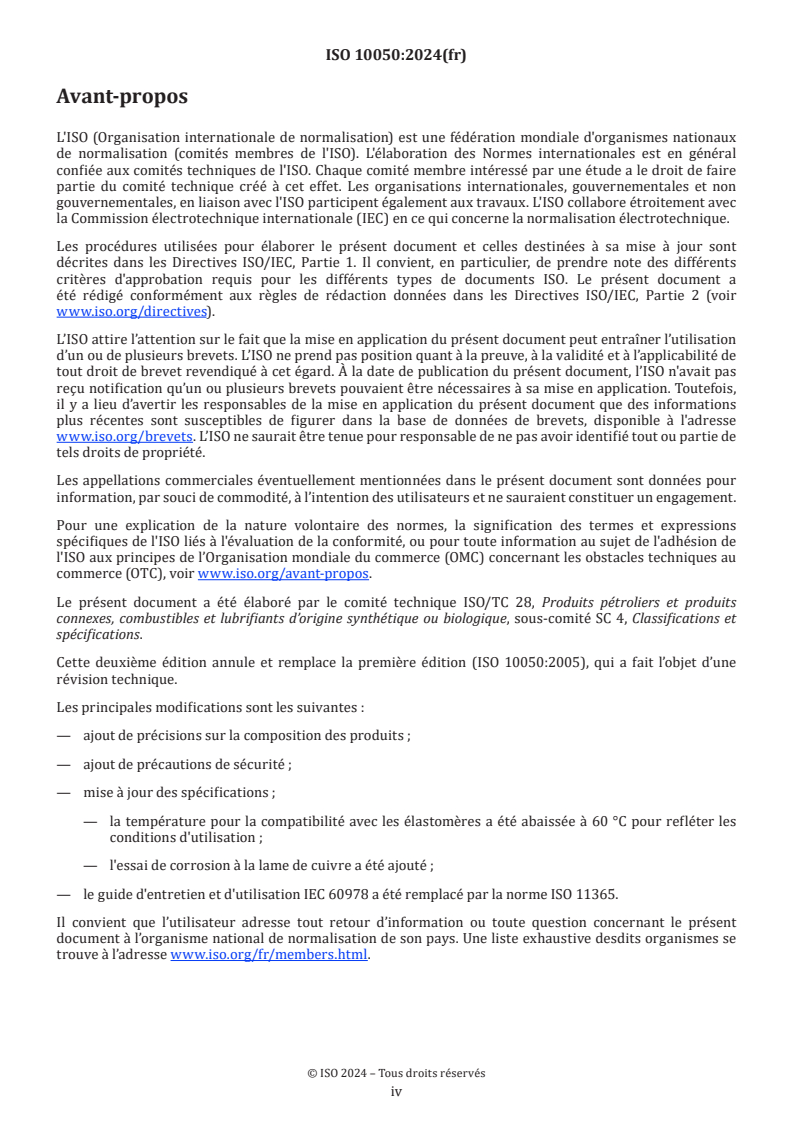ISO 10050:2024 - Lubrifiants, huiles industrielles et produits connexes (classe L) — Famille T (Turbines) — Spécifications pour les fluides de régulation de turbines à base d'esters de triaryl phosphate (catégorie ISO-L-TCD) Released:23. 07. 2024