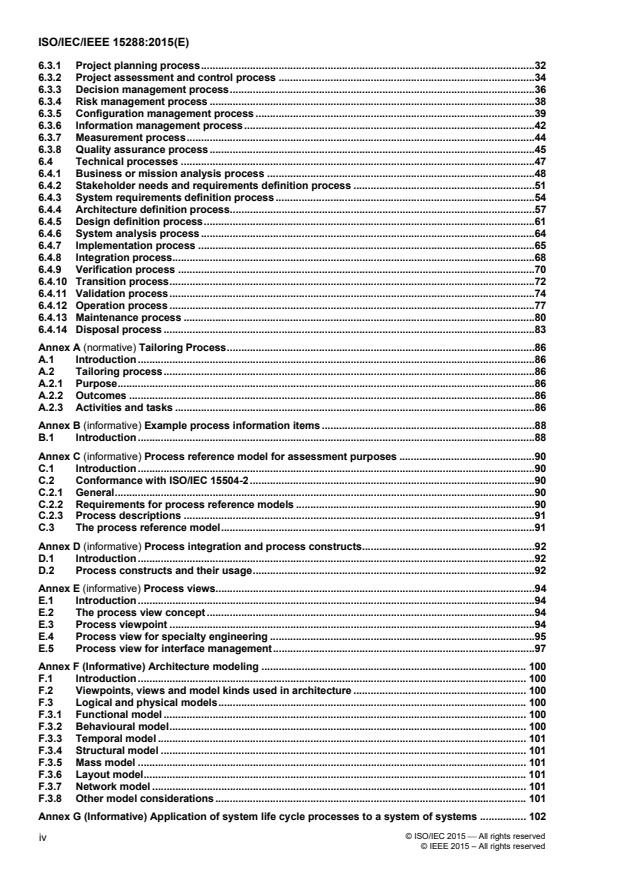 ISO/IEC/IEEE 15288:2015 establishes a common framework of process descriptions for describing the life cycle of systems created by humans. It defines a set of processes and associated terminology from an engineering viewpoint. These processes can be applied at any level in the hierarchy of a system's structure. Selected sets of these processes can be applied throughout the life cycle for managing and performing the stages of a system's life cycle. This is accomplished through the involvement of all stakeholders, with the ultimate goal of achieving customer satisfaction. ISO/IEC/IEEE 15288:2015 also provides processes that support the definition, control and improvement of the system life cycle processes used within an organization or a project. Organizations and projects can use these processes when acquiring and supplying systems. ISO/IEC/IEEE 15288:2015 concerns those systems that are man-made and may be configured with one or more of the following system elements: hardware, software, data, humans, processes (e.g., processes for providing service to users), procedures (e.g., operator instructions), facilities, materials and naturally occurring entities.