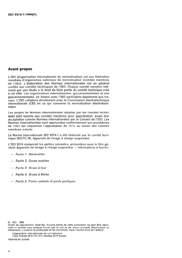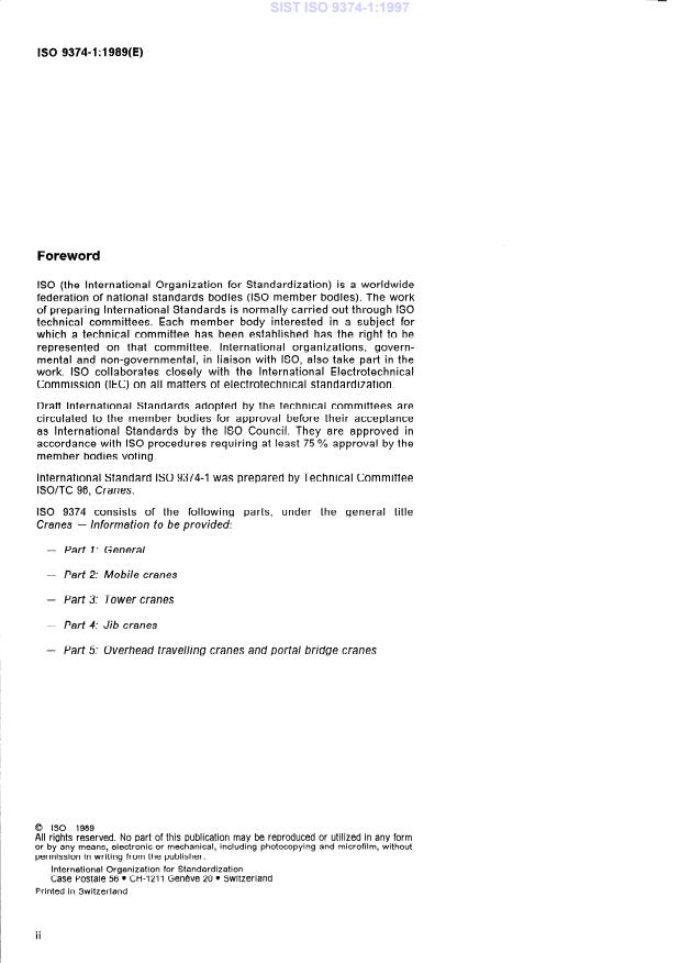 ISO 9374-1:1989 - Cranes -- Information to be provided