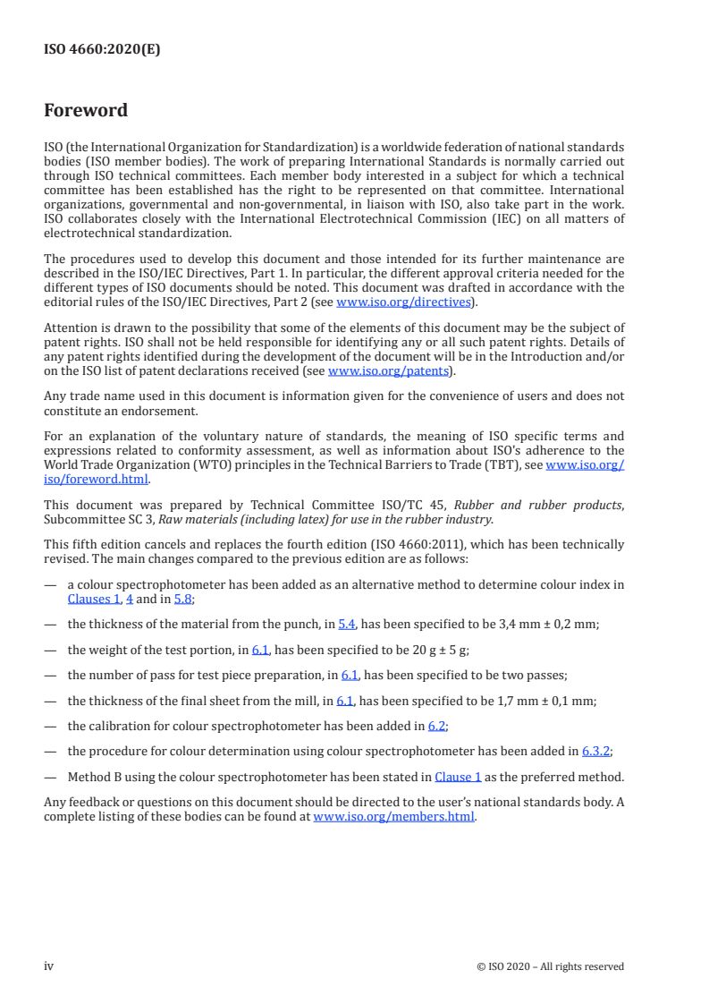 Keywords: ISO 4660:2020, raw natural rubber, colour index test, colour spectrophotometer, Lovibond comparator, colour determination, Delta E, CIE Lab*.