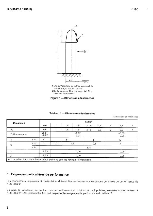 La présente partie de I’ISO 8092 prescrit les dimensions et les exigences particulières relatives aux broches pour
