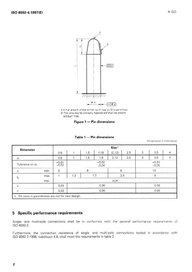 This part of IS0 8092 specifies dimensions for the pins of single- and multi-pole connections and specific