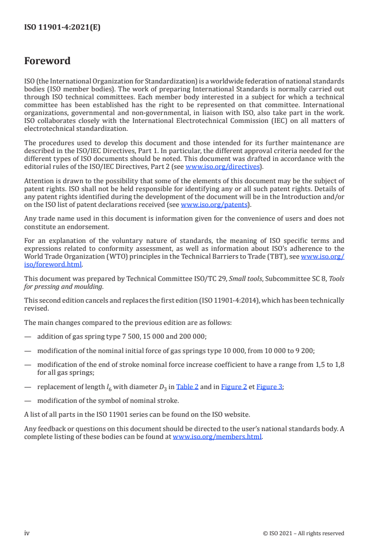 ISO 11901-4:2021 - Tools for pressing — Gas springs — Part 4: Gas springs with increased spring force and same built height Released:8/16/2021