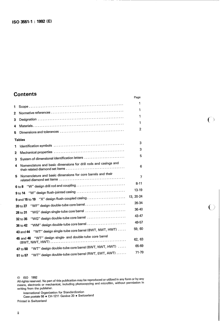 ISO 3551-1:1992는 회전식 코어 다이아몬드 드릴링 장비에 대한 명칭 체계를 확립하고, 시스템 A의 한계 내에서 상호 교환성을 보장하기 위한 주요 치수를 기재한다. 이 표준은 드릴 로드와 커플링, 케이싱, 케이싱 커플링, 케이싱 비트, 케이싱 신발, 드라이브 신발 및 케이싱 리머 쉘, 코어 바렐, 코어 비트, 코어 리프터 및 리밍 쉘 등과 같은 다양한 장비에 대해 특성을 규정한다. 이 장비는 직경이 30mm에서 200mm인 구멍을 뚫고 직경이 18.5mm에서 165mm인 코어를 제공하는 것을 목표로 한다.