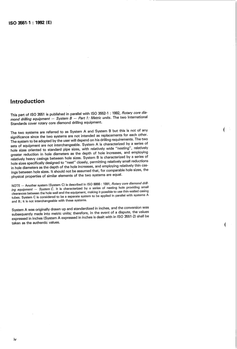 ISO 3551-1:1992 - Rotary core diamond drilling equipment — System A — Part 1: Metric units Released:7/2/1992