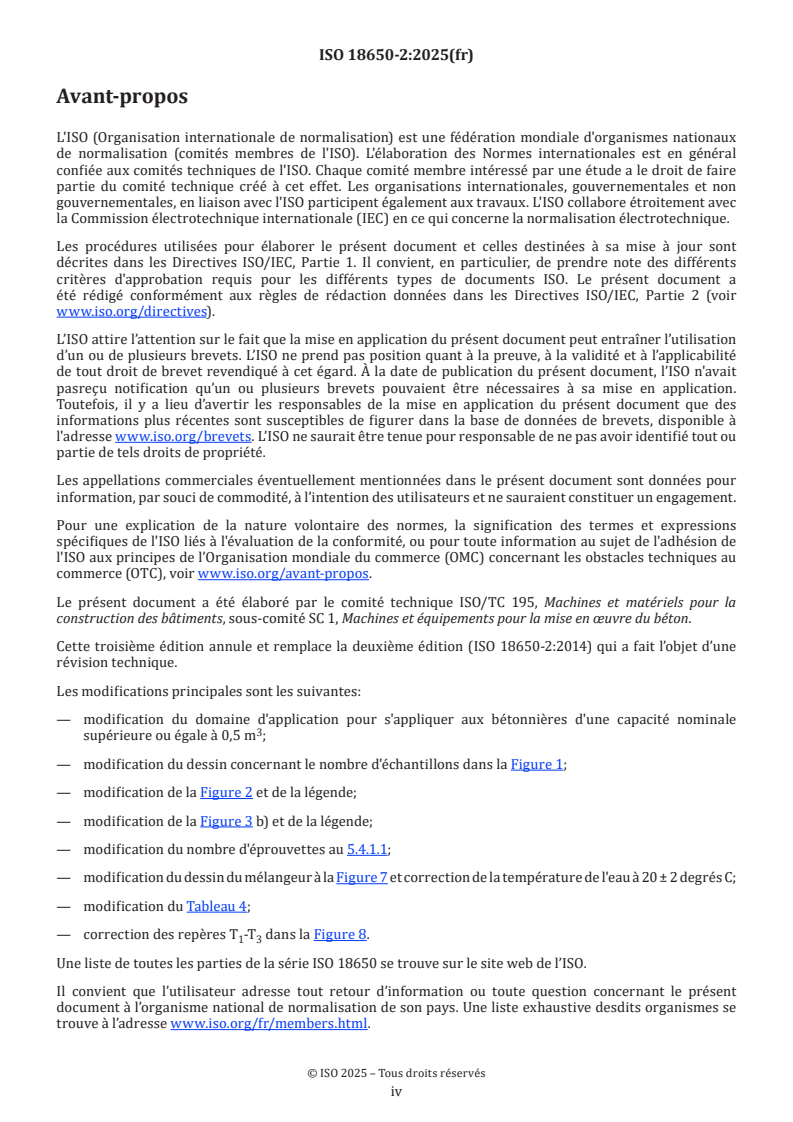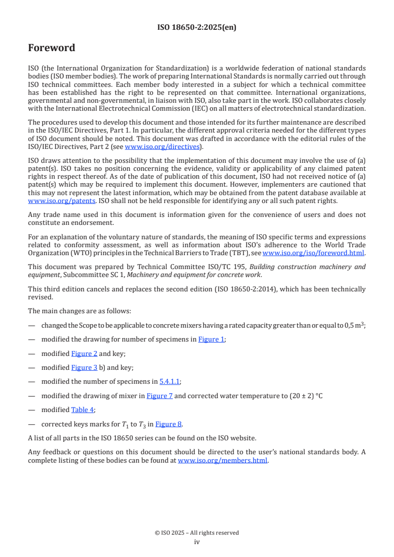Keywords: ISO 18650-2:2025, concrete mixers, mixing efficiency, batch-type mixer, continuous mixer, mixing performance test, sampling, variance test, slump, air content, compressive strength.