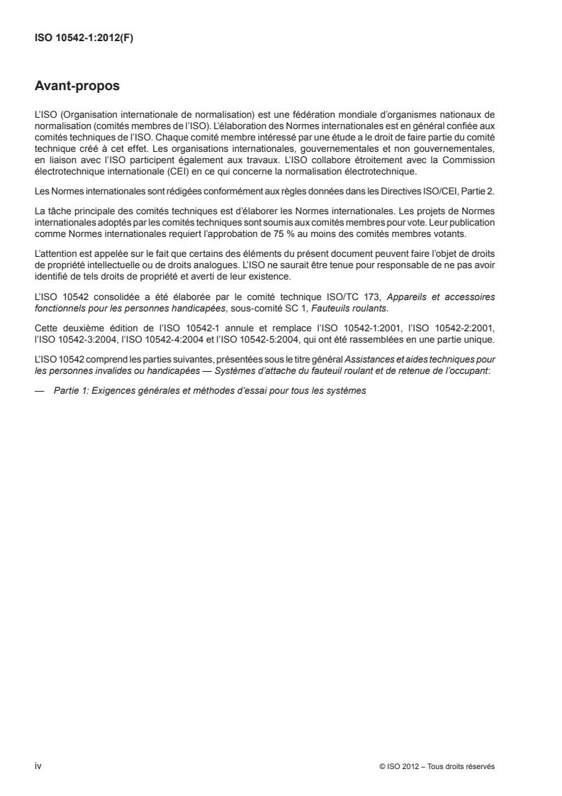 ISO 10542-1:2012 - Technical systems and aids for disabled or handicapped persons -- Wheelchair tiedown and occupant-restraint systems