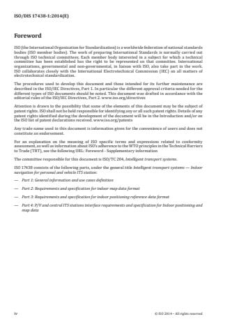 ISO 17438-1:2016 - "Intelligent transport systems - Indoor navigation for personal and vehicle ITS station - Part 1: General information and use case definition" defines the architecture, scope and use cases for delivering indoor navigation services within the ITS ecosystem. It introduces the additional system components and data flows required to provide indoor positioning and routing for personal and vehicle ITS stations (P/V ITS stations), covering drivers, passengers and pedestrians. The document sets the foundation for Parts 2–4, which specify data formats and interface requirements.