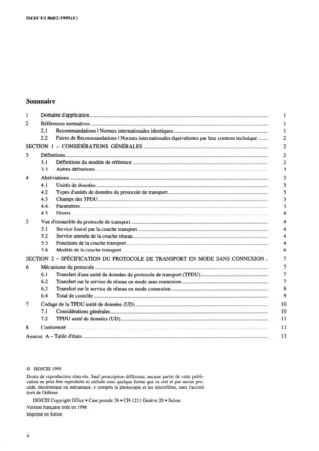 ISO/IEC 8602:1995 - Technologies de l'information -- Protocole assurant le service de transport en mode sans connexion de l'OSI