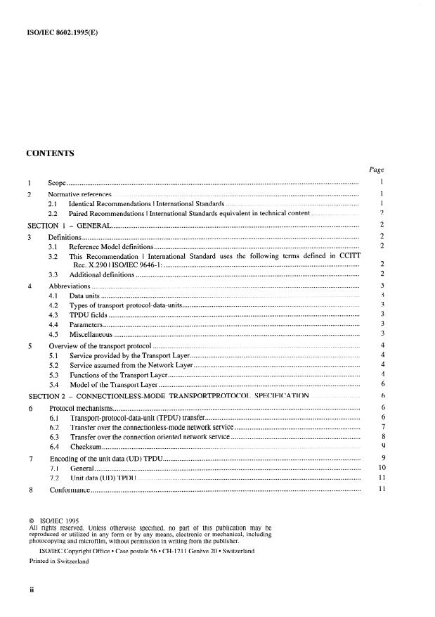 Keywords: ISO/IEC 8602, OSI connectionless-mode transport service, TPDU, UD TPDU, transport protocol, transport layer, PICS, checksum, X.234, connectionless transport.