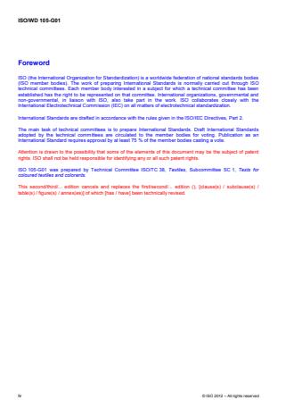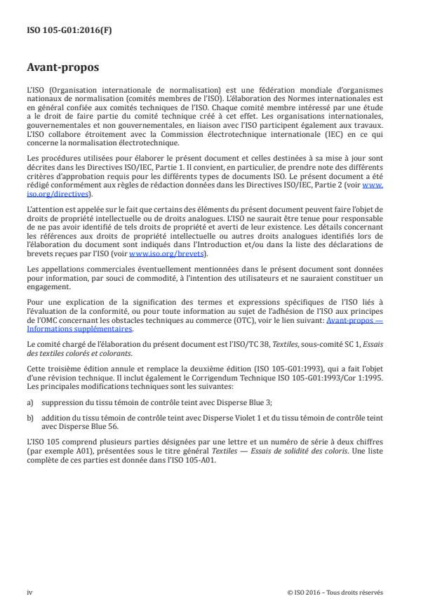 Cette troisième édition annule et remplace la deuxième édition (ISO 105-G01:1993), qui a fait l’objet