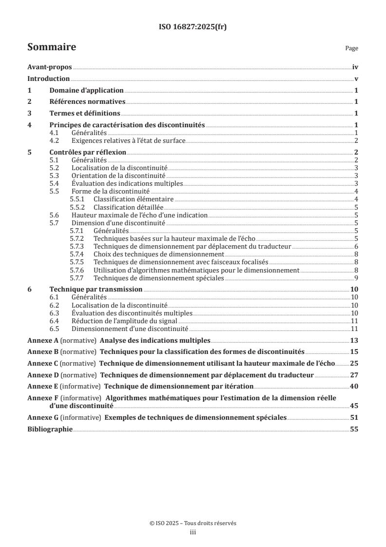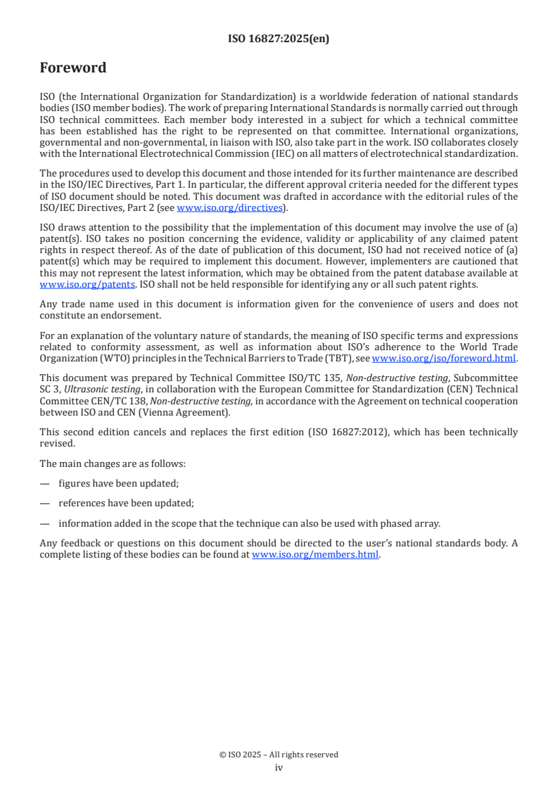 Keywords: ISO 16827:2025, ultrasonic testing, non‑destructive testing, characterization, sizing of discontinuities, pulse‑echo, through‑transmission, phased array, echo height, time of flight.