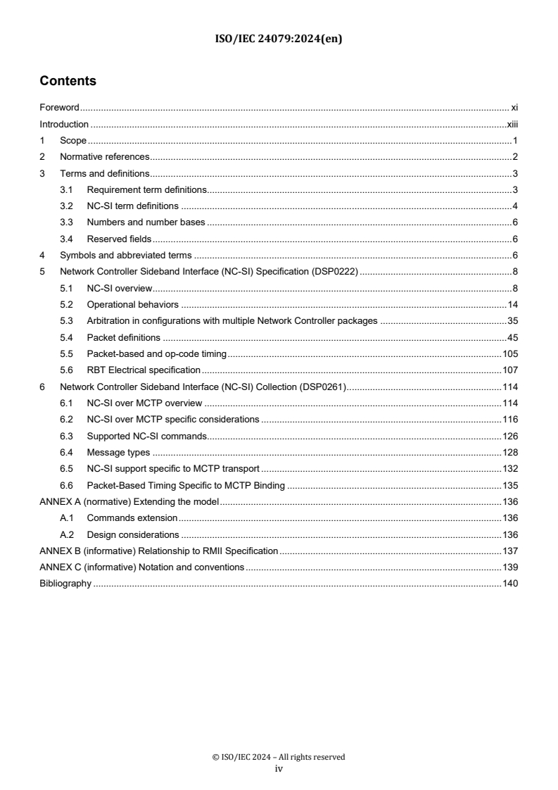 Keywords: ISO/IEC 24079:2024, NC‑SI, Network Controller Sideband Interface, MCTP, RBT, RMII, Management Controller, Network Controller, DMTF.