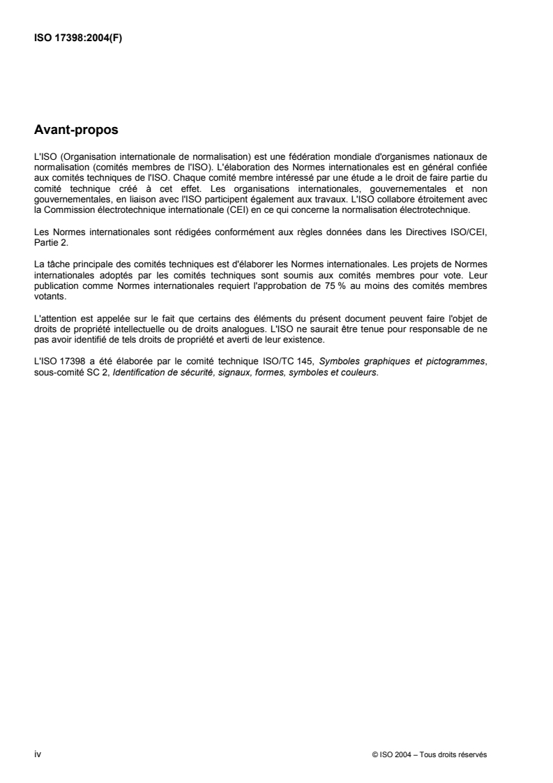 ISO 17398:2004 - Couleurs de sécurité et signaux de sécurité — Classification, performance et durabilité des signaux de sécurité Released:1. 09. 2004