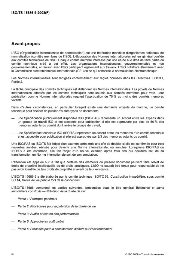 ISO/TS 15686-9:2008 - Bâtiments et biens immobiliers construits -- Prévision de la durée de vie