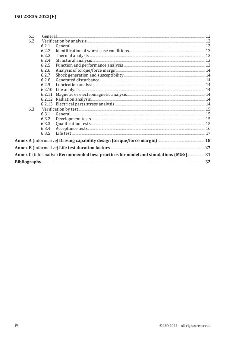 ISO 23835:2022 organizes requirements across design and verification disciplines. Major technical topics include: