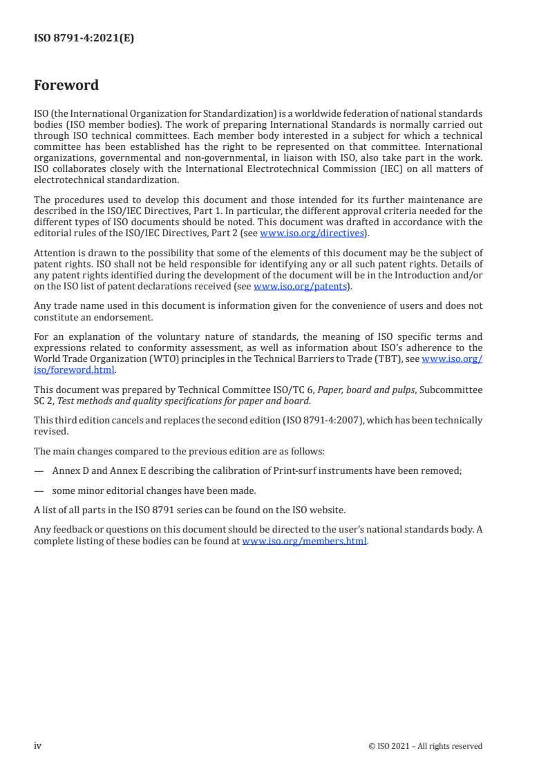 ISO 8791-4:2021 - Paper and board — Determination of roughness/smoothness (air leak methods) — Part 4: Print-surf method Released:5/7/2021