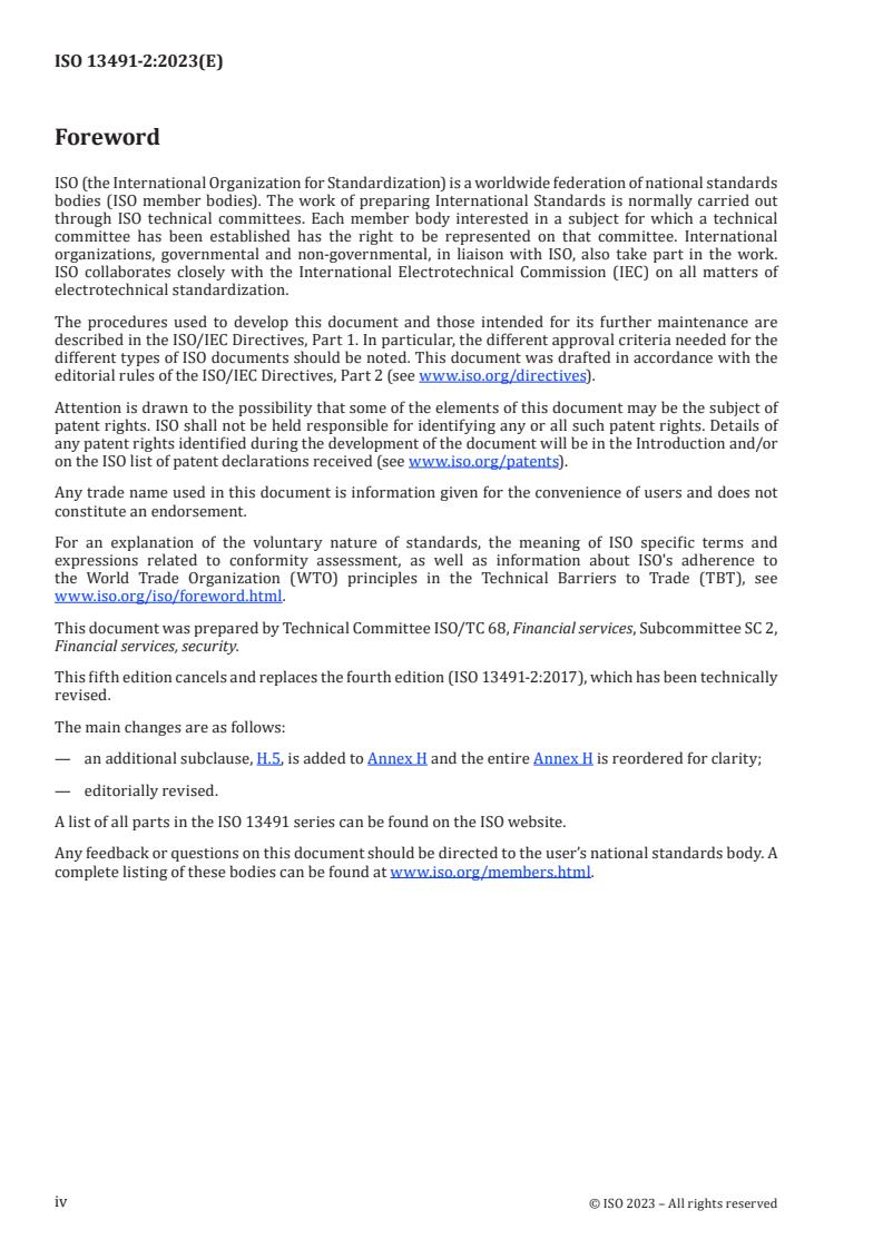 ISO 13491-2:2023 is a standard published by the International Organization for Standardization (ISO). Its full title is "Financial services - Secure cryptographic devices (retail) - Part 2: Security compliance checklists for devices used in financial transactions". This standard covers: This document specifies checklists to be used to evaluate secure cryptographic devices (SCDs) incorporating cryptographic processes as specified in ISO 9564‑1, ISO 9564‑2, ISO 16609, and ISO 11568 in the financial services environment. Integrated circuit (IC) payment cards are subject to the requirements identified in this document up until the time of issue, after which they are to be regarded as a “personal” device and outside of the scope of this document.