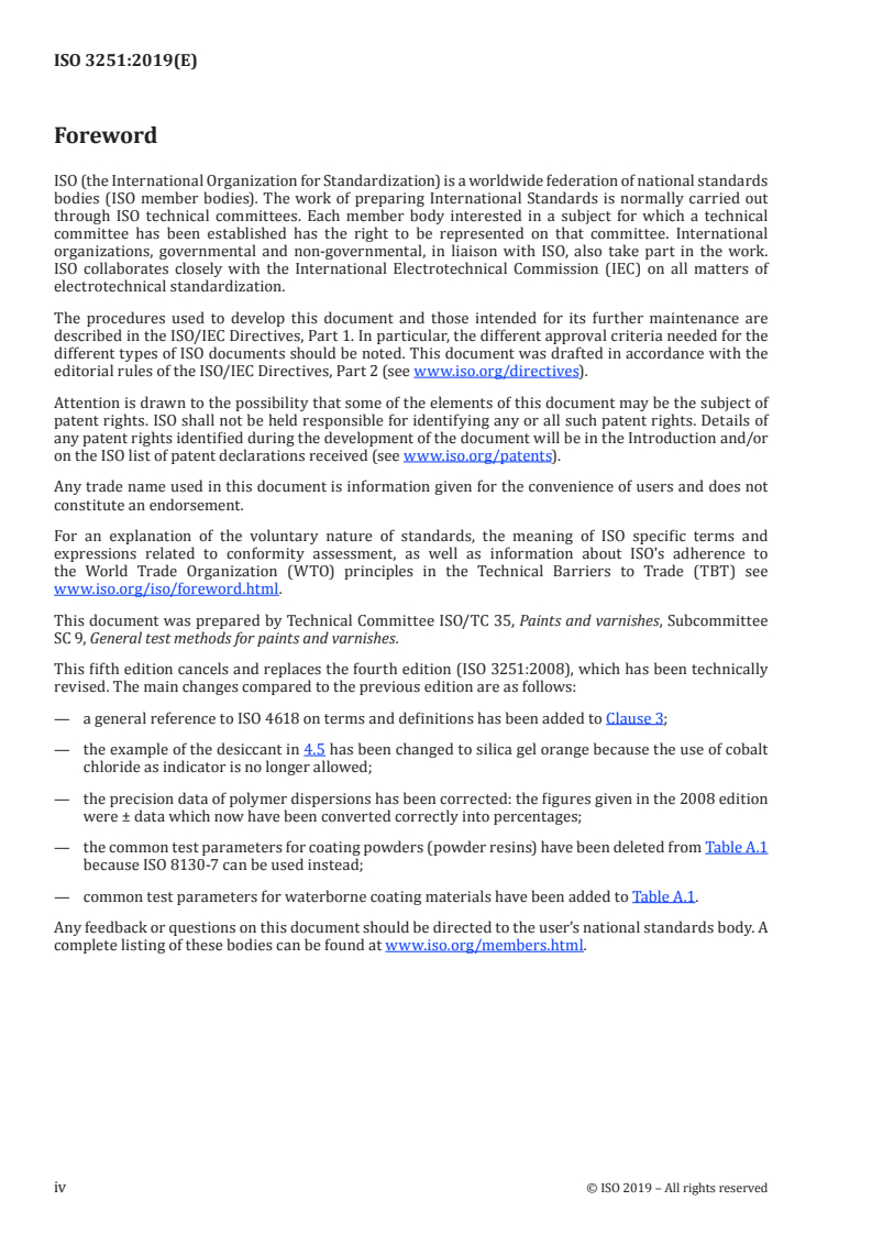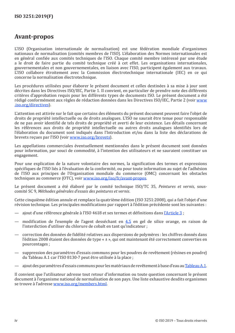 Cette cinquième édition annule et remplace la quatrième édition (ISO 3251:2008), qui a fait l'objet d'une