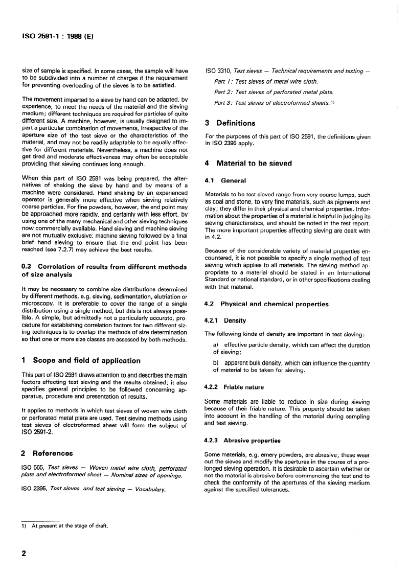 ISO 2591-1:1988 - Test sieving — Part 1: Methods using test sieves of woven wire cloth and perforated metal plate Released:12/15/1988
